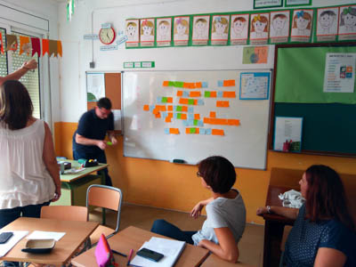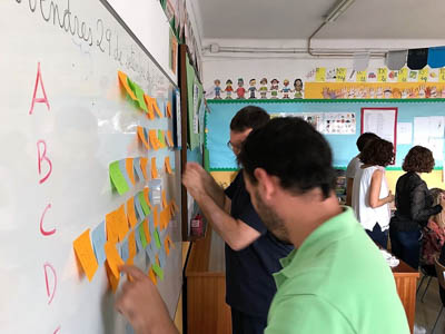 Ens vam reunir amb el grup impulsor, coordinadores i resta del claustre, al llarg del matí per a reflexionar sobre les nostres idees dins del marc d’escola avançada.