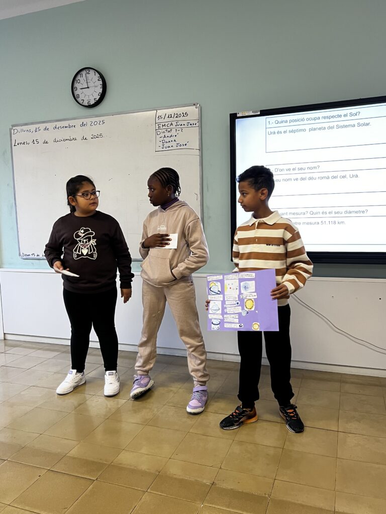 Han elaborat murals i petites explicacions per compartir amb la resta de companys i companyes tot allò que han descobert. Han après com són els planetes, quines característiques tenen i en què es diferencien els uns dels altres. 🚀