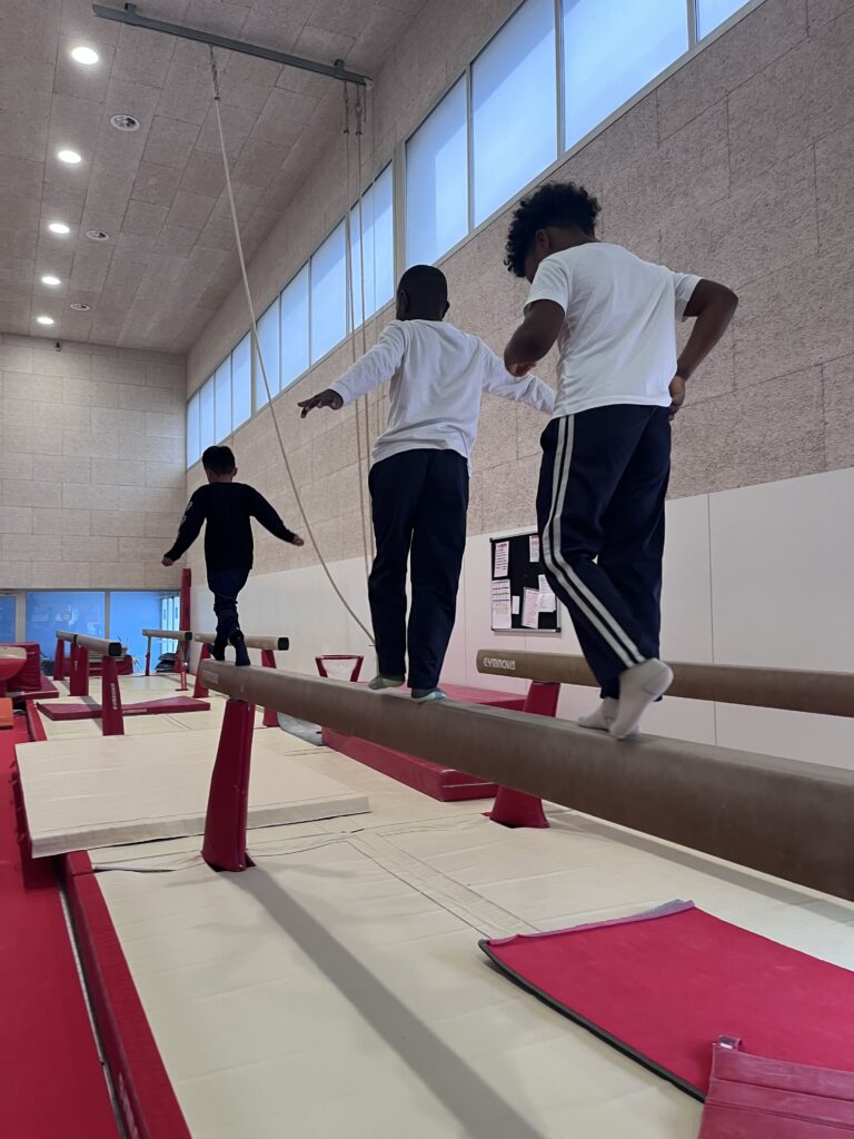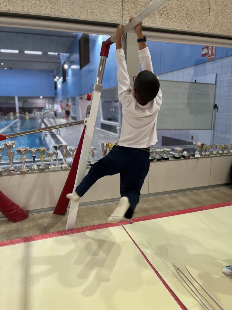 Els nens i nenes de 2n hem fet l’activitat «posem-nos cap per avall» i hem gaudit moltíssim descobrint la gimnàstica artística! Hem fet molt exercici i hem superat algunes pors!